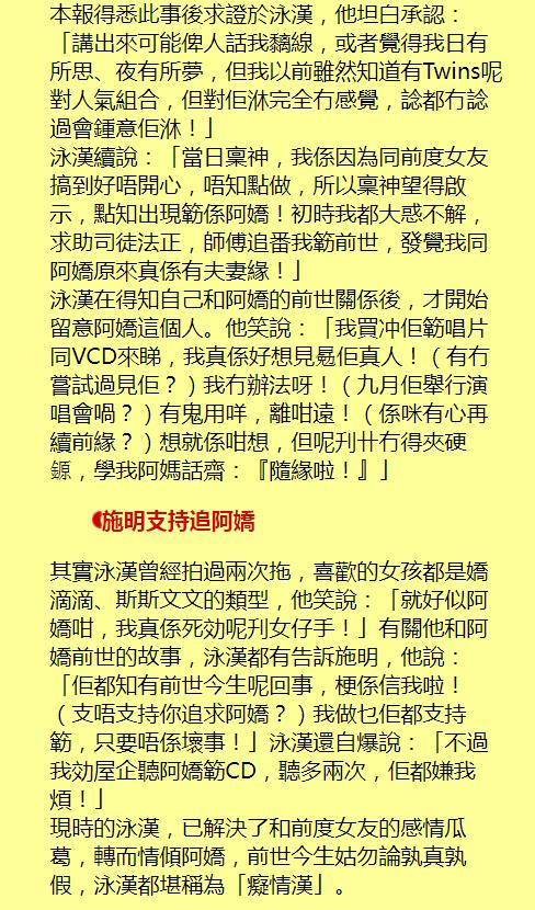 施明最无法松弛的,是犬子回港插足演艺圈后,疑似遭到媒体摧毁。据悉当年李泳汉称钟欣潼(阿娇)是我方前世爱妻,还被拍到拿着玫瑰花在阿娇住所楼下第候,被塑酿成痴情男致使遭到嘲讽。