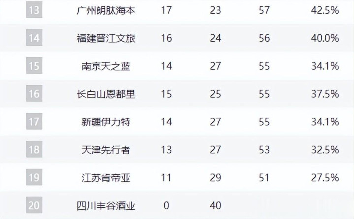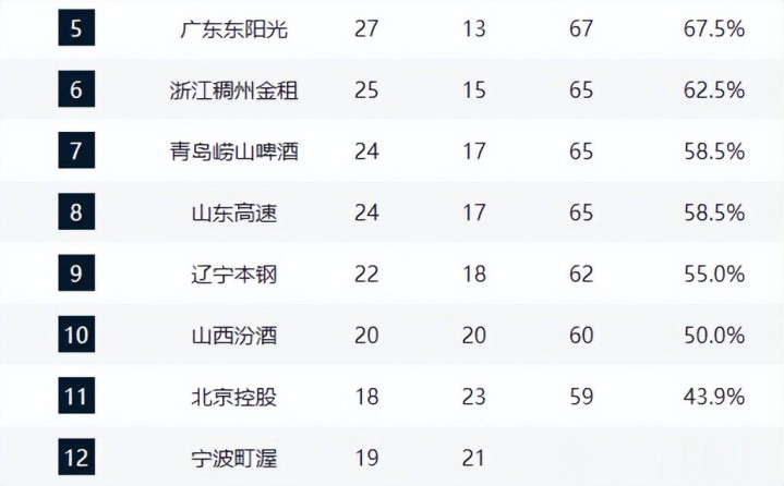 青岛24胜17负与山东同分,但因输赢关系残障,末轮对阵新疆(已锁定榜首)竟然无胜算,最终名次锁定第七。浙江男篮虽未出战,但越过青岛、山东各一个胜场,第六名已无悬念。