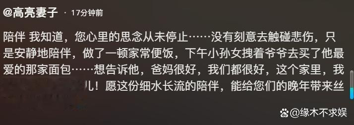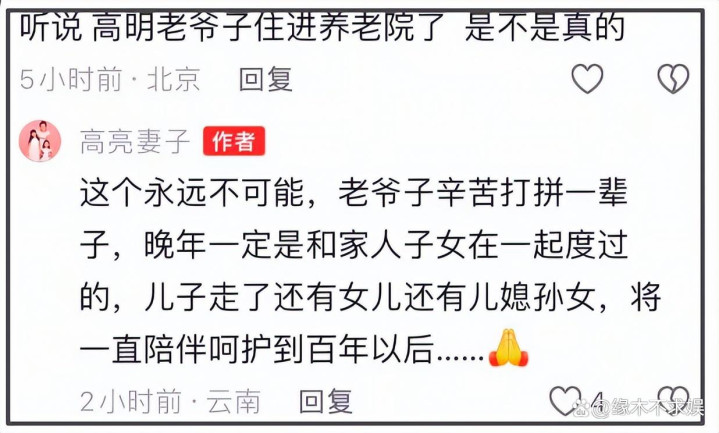 2月11日,是高亮死一火一周年的日子。却有讯息称其84岁的父亲照旧住进了养老院。对此,高亮太太发声复兴,曝出真相。