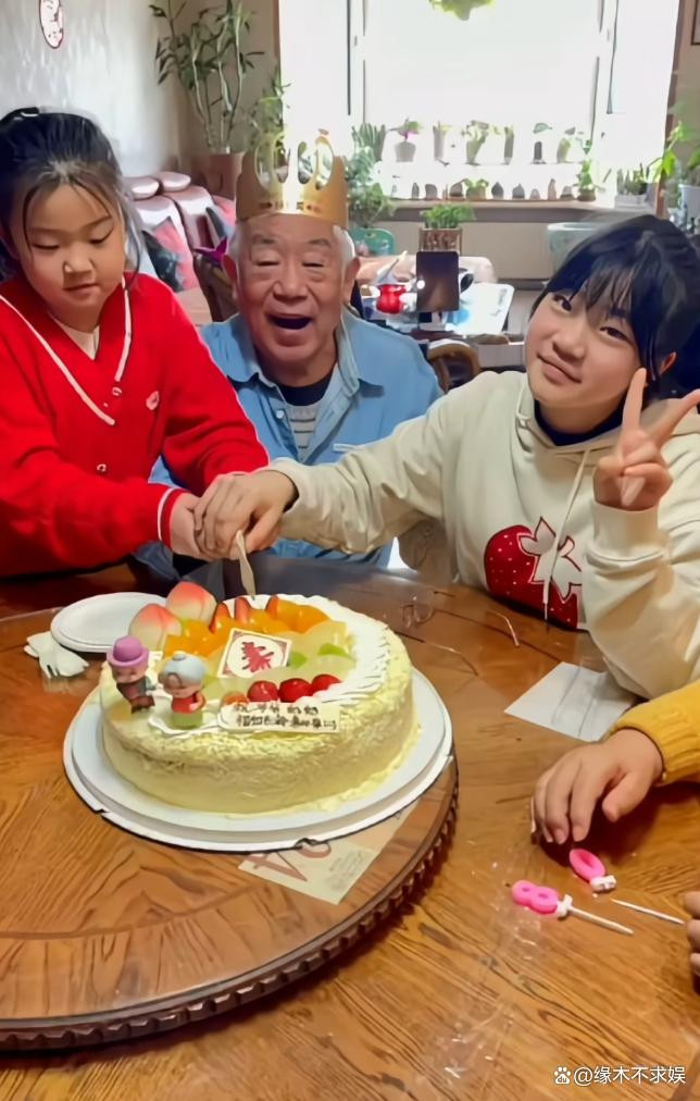 其实就在2个月之前,崇高还和俩个孙女一谈庆生。他戴着寿辰帽,被两个孙女包裹着,笑得相配痛快。有孙女环绕膝下,又有女儿儿媳情切,想必崇高的晚年亦然很幸福的。