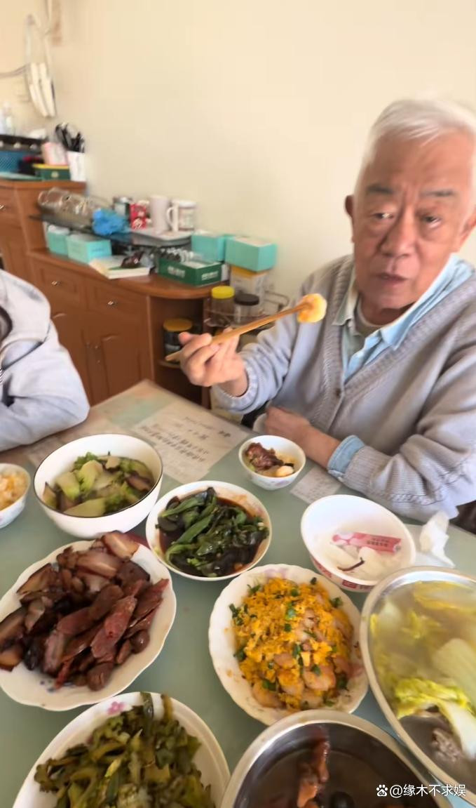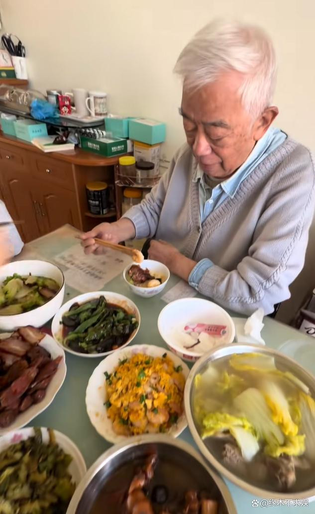 2月13日,段瑞芬晒出崇高近照,视频中崇高头发照旧全白。他和儿媳、两个孙女同桌吃饭。段瑞芬还贴心的给崇高夹菜,问他“好不好意思味”。