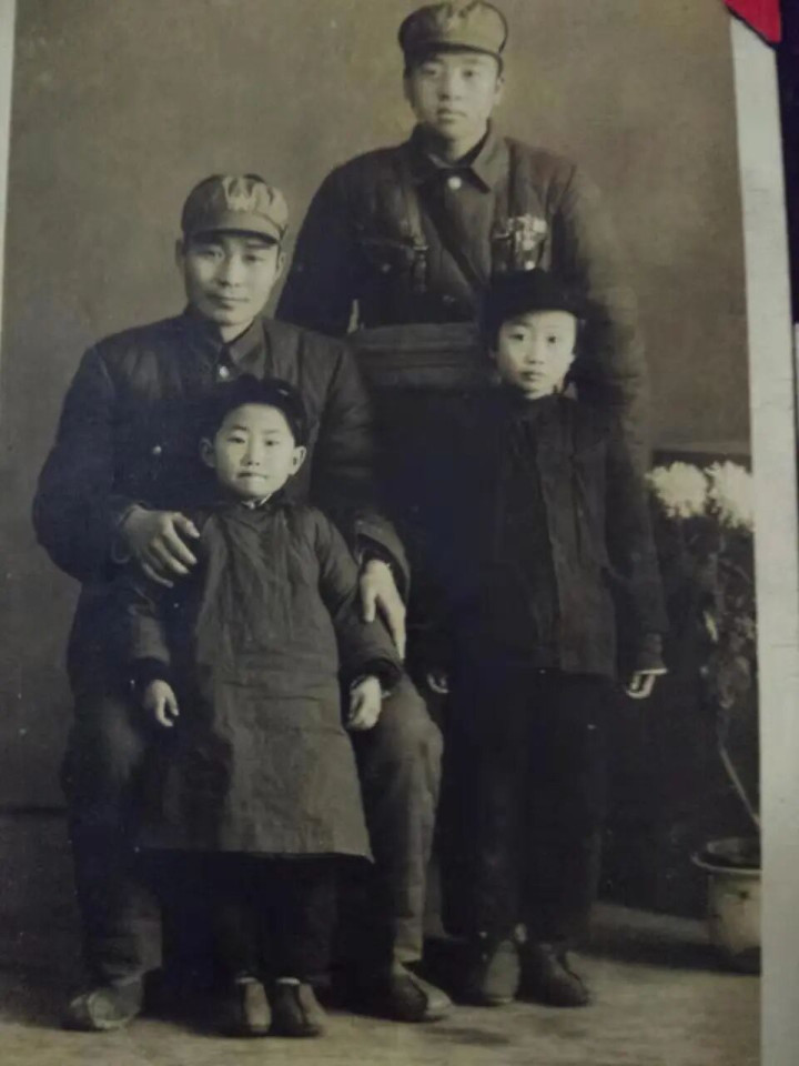△王泉(后排左)与两个妹妹、警卫员合影