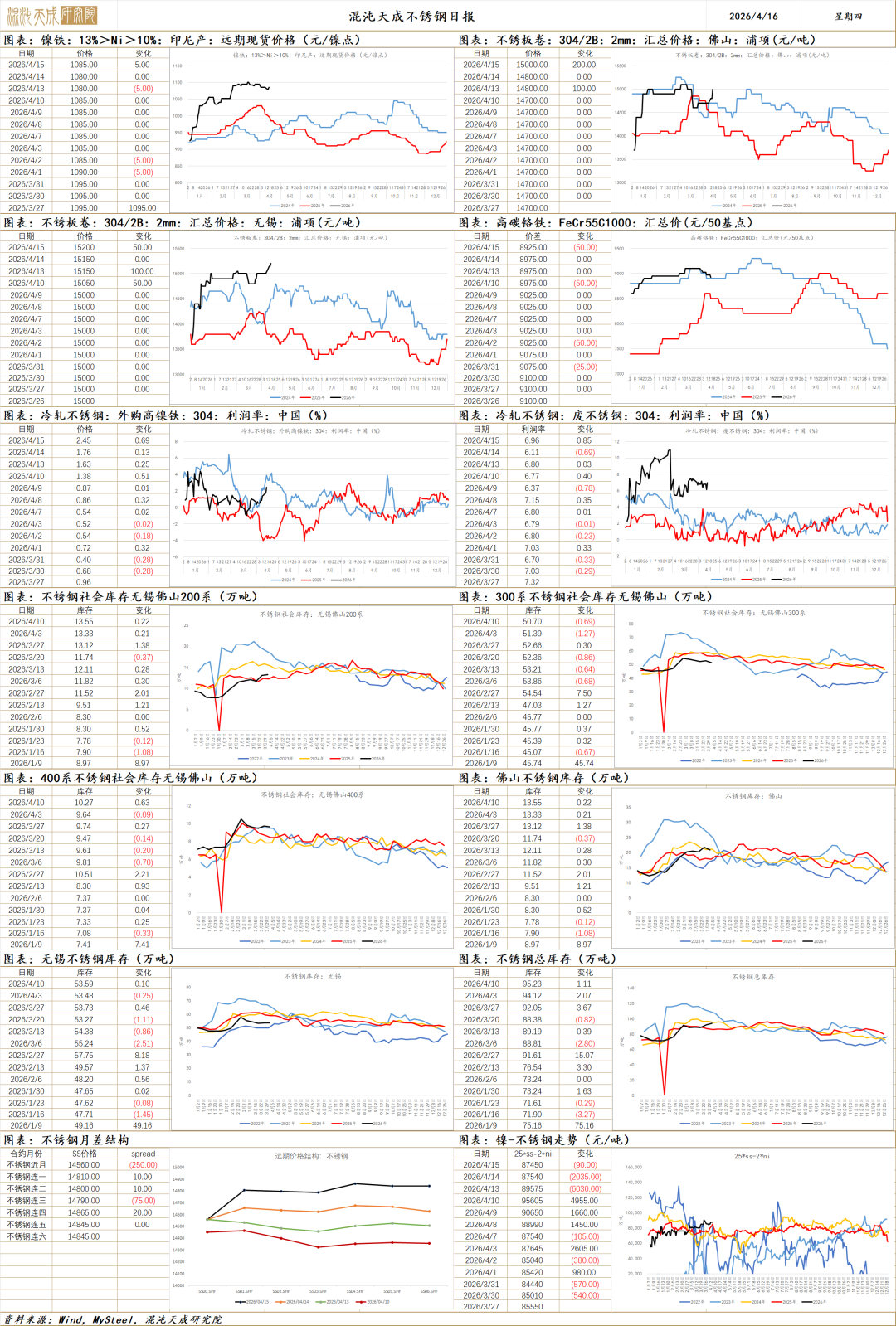 原料端,印尼镍矿基准价退换落地后,镍矿成本或进一步上行,不锈钢成本撑持上抬。供应端月不锈钢排产环比小幅下滑,需求端当今处于不锈钢淡季,需求相对偏弱。成本鼓吹下,不锈钢价钱上行。后续钢价主要跟从原料价钱波动。链接不雅察宏不雅环境变化,原料价钱走向以及印尼计谋变动。风险主要来自宏不雅风险以及印尼限矿计谋力度不足预期。