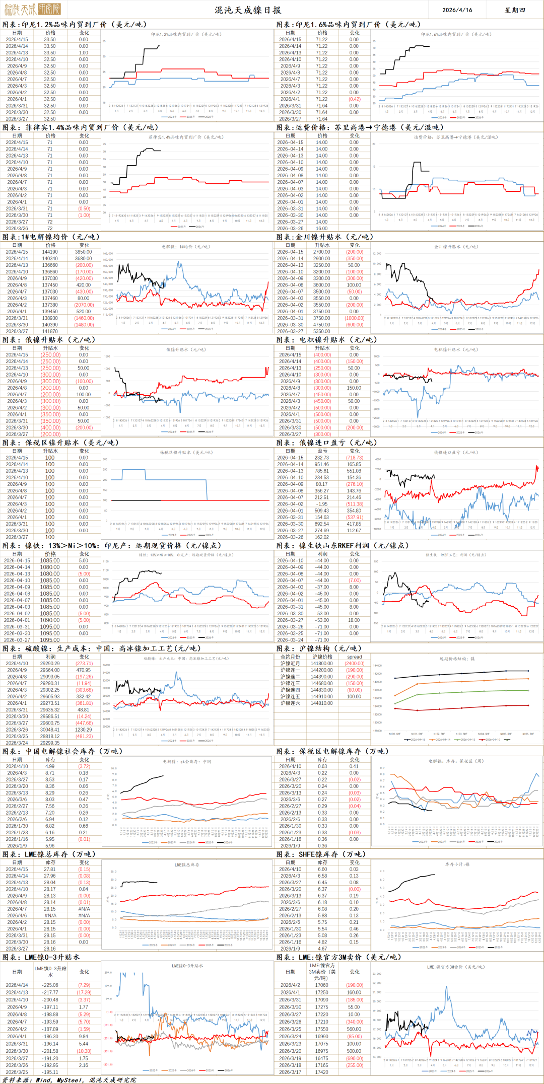 2、【WBMS:2月寰球高超镍供应多余0.29万吨】世界金属统计局(WBMS)公布的最新通知浮现,2026年2月,寰球高超镍产量为29.18万吨,销耗量为28.89万吨,供应多余0.29万吨;1-2月,寰球高超镍产量为59.6万吨,销耗量为59.42万吨,供应多余0.19万吨。2月寰球镍矿产量为32.46万吨,1-2月寰球镍矿产量为64.9万吨。(WBMS)
