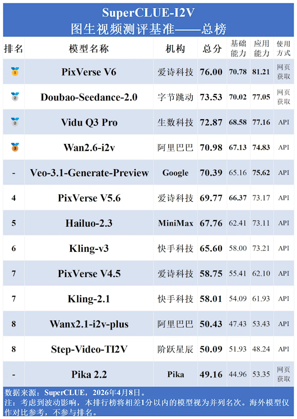 快科技4月8日讯息,SuperCLUE发布2026年4月华文图生视频模子测评榜单,国产模子进展亮眼,径直包揽前三名,结束对国际模子的反超。